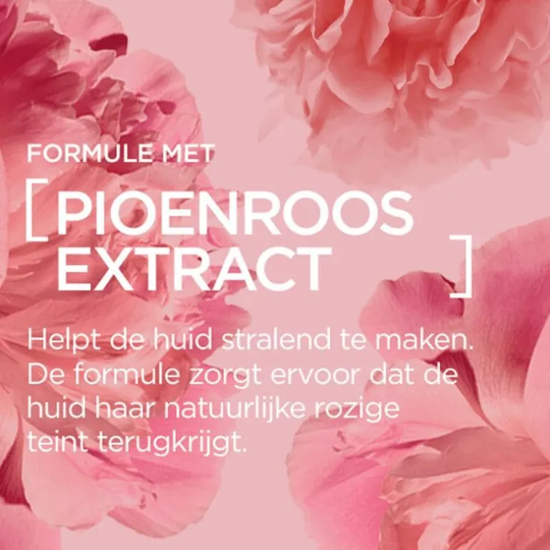 De huid hervindt haar kracht en wordt steviger. Dankzij het Pioenroos-extract gecombineerd met de iris bloem, geeft deze rozige dagverzorging de huid een gerevitaliseerde en frisse glans.