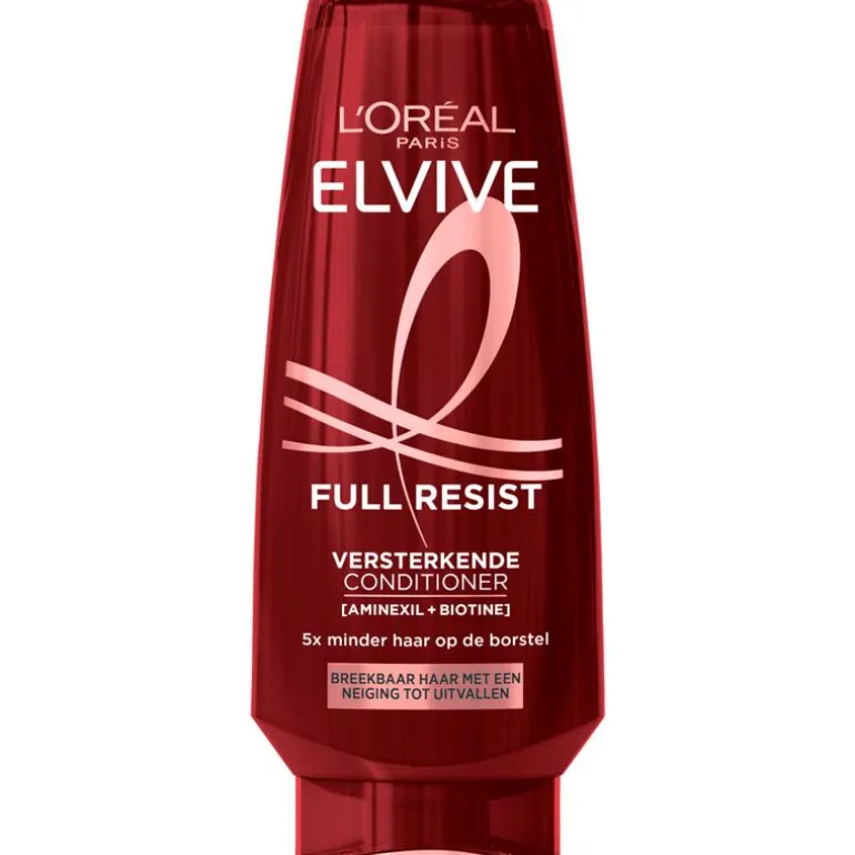 De L’Oréal Paris Elvive Full Resist Conditioner is ontwikkeld voor kwetsbaar, breekbaar haar, met een neiging tot uitvallen*. De versterkende formule bevat aminexil en biotine. De Elvive Full Resist Conditioner van L’Oréal Paris werkt vanaf de haarwortels tot aan de punten om weerstand tegen haarbreuk te vergroten, met 5X minder haar op de borstel**. Het werkt als een proteïne shake voor verzwakt haar. Jouw Elvive, nu nog beter! Onze vernieuwde fles is gemaakt met tot -20% minder plastic*** en is gemaakt van 100% gerecycled plastic****. Daarnaast is de fles ook recyclebaar. *Vanwege haarbreuk. **Instrumentele test shampoo + conditioner na 5 toepassingen. ***Ten opzichte van de vorige verpakking. Plastic vermindering varieert afhankelijk van het verpakkingsformaat. ****Met uitzondering van de additieven, kleurstoffen en labels.