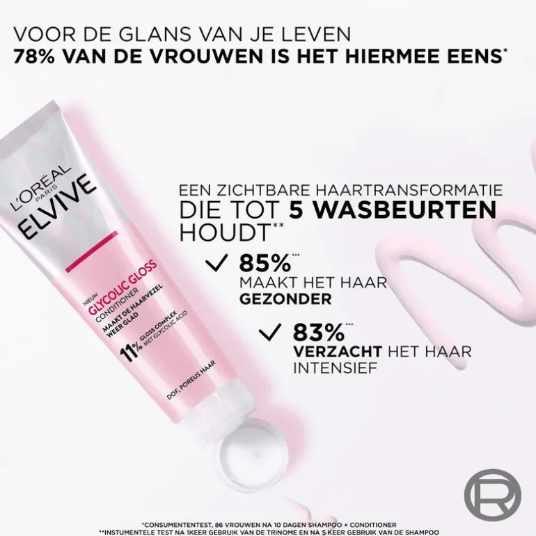 - Klinisch bewezen: deze conditioner zorgt voor twee keer meer glans¹, met zichtbare resultaten die tot 5 wasbeurten aanhouden³. Voor 88% zachter haar²!