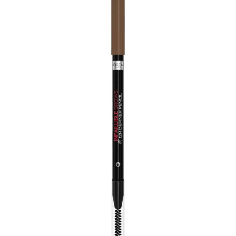 Heb je dunne wenkbrauwen? Probeer dan de L’Oréal Paris Infaillible 12H Definer Pencil ! Dit wenkbrauwpotlood is perfect voor een natuurlijk ogende wenkbrauwlook !Met de L’Oréal Paris Infaillible 12H Definer Pencil kun je jouw wenkbrauwen inkleuren en bijtekenen Zo creëer je gemakkelijk jouw ideale wenkbrauwvorm en geef je jouw wenkbrauwen wat extra kleur waar nodig.De stevige punt van het potlood zorgt ervoor dat je fijne haartjes kan tekenen en de poederachtige formule die mat is, zorgt voor een natuurlijk effect en is ideaal voor het definiëren en vormgeven van de wenkbrauwen. Dit slijpbaar wenkbrauwpotlood bevat een borsteltje op de andere kant.De Infaillible 12H Definer Pencil is makkelijk aan te brengen en houdt tot 12 uur lang *