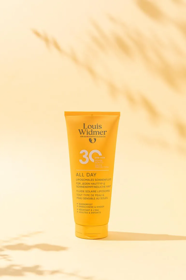 Louis Widmer All Day 30 biedt hoge zonnebescherming en is waterbestendig.
