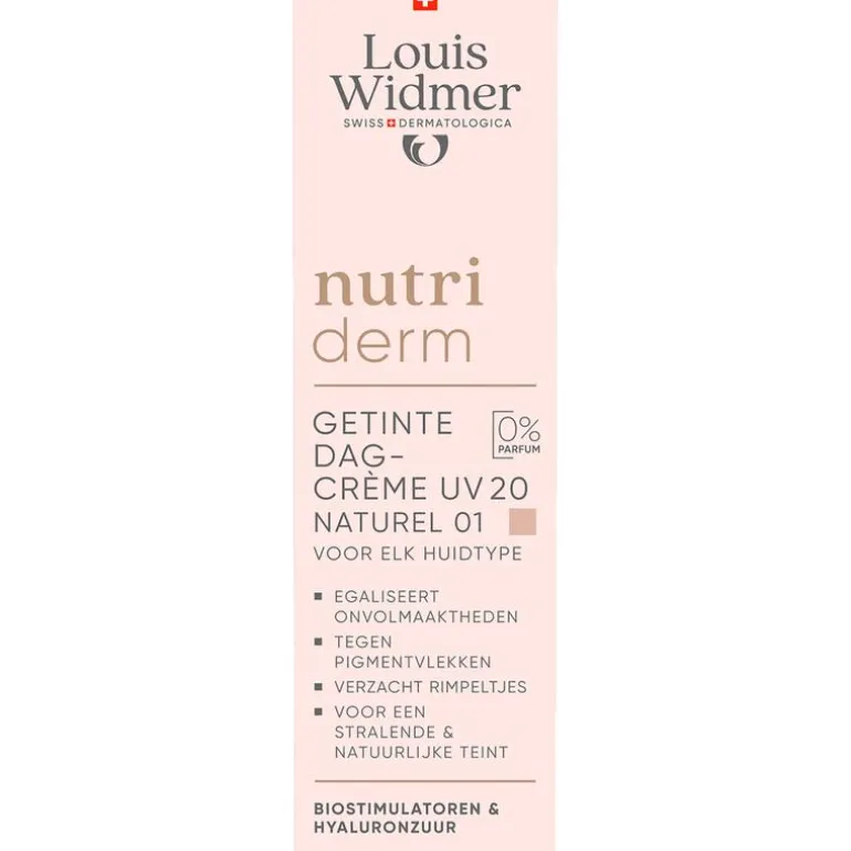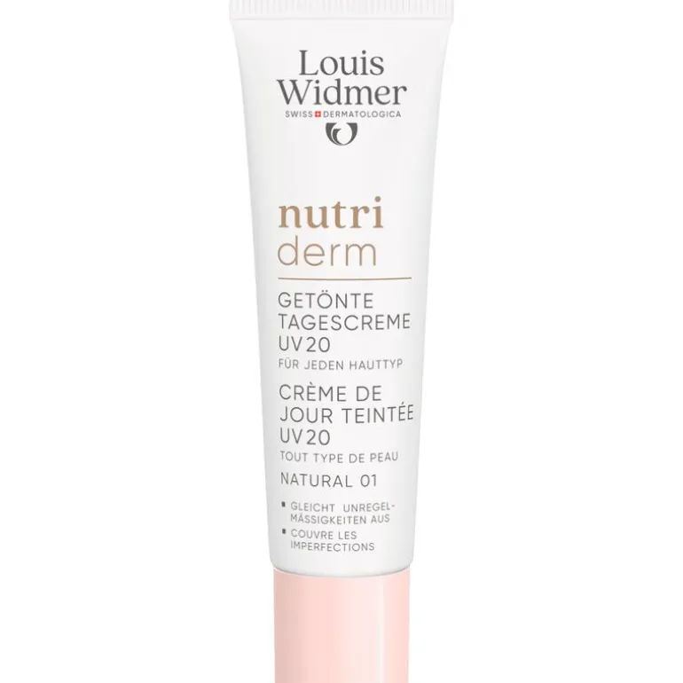 Louis Widmer nutriderm Getinte Dagcrème UV 20 is een getinte dagverzorging met UV-bescherming die de teint in balans brengt en de huid een frisse, egale uitstraling geeft.