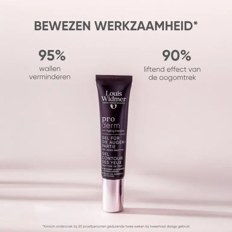 Louis Widmer proderm Oogomtrekgel is een anti-ageing gel voor de oogomtrek, met Eye’Fective™ tegen rimpels, donkere kringen en wallen.