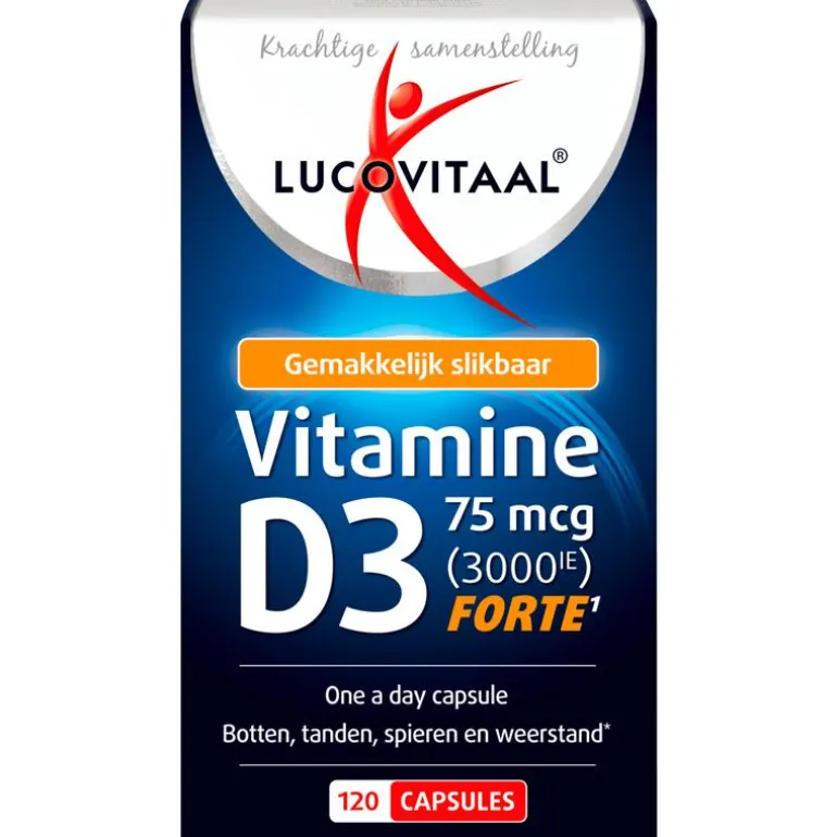Vitamine D Forte verhoogt de opname van kalk in de botten en heeft bovendien een positieve invloed op het immuunsysteem. Ook speelt het een rol bij het behoud van sterke botten en is goed voor de werking van de spieren. Eén Vitamine D3 75 mcg capsule bevat 75 mcg vitamine D3.