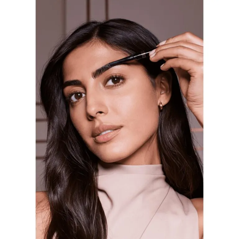 Borstel je wenkbrauwen eerst naar boven en vervolgens naar beneden. Creer met de Brow Shaper een perfecte vorm vanaf de bovenste hoek van je wenkbrauw. Kleur je wenkbrauwen vervolgens in met een zachte, vegende beweging voor een natuurlijk resultaat.