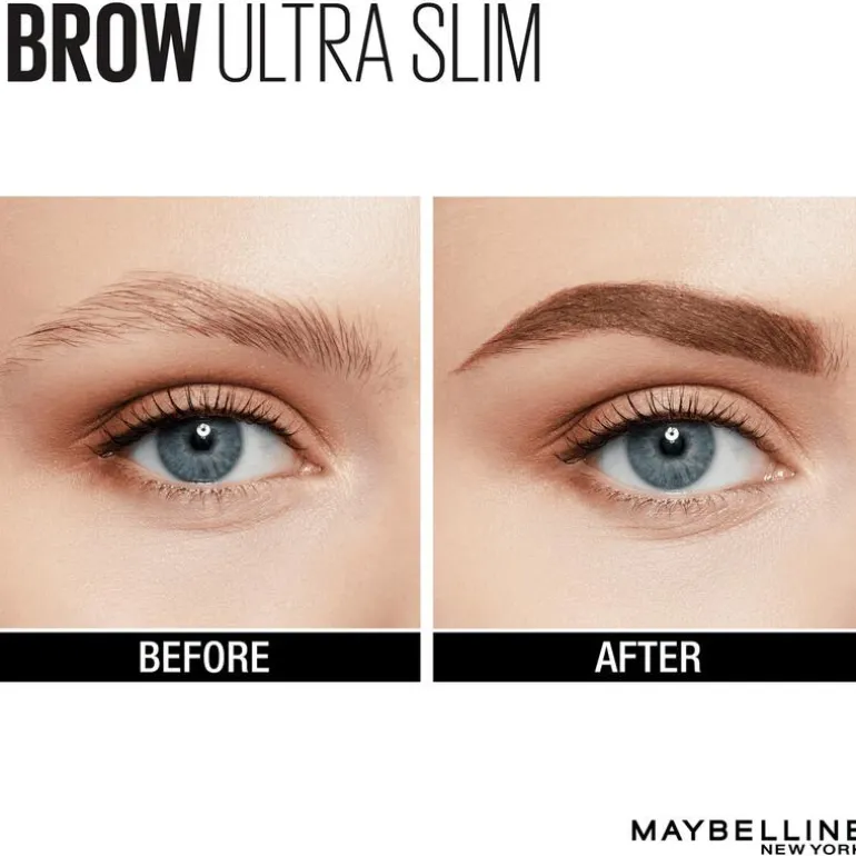 Uiterst nauwkeurig intrekbaar wenkbrauwpotlood voor een ultra-natuurlijk resultaat:Met Brow Ultra Slim van Maybelline kunt u uw wenkbrauwen precies tekenen met een natuurlijk resultaat. Dit wenkbrauwpotlood heeft een ultrafijn anti-breekpunt van 1,5 mm met een zachte en langdurige formule en een borstel om je wenkbrauwen op een natuurlijke manier te tekenen.