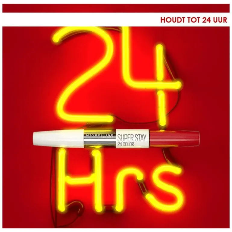 Combineer het beste van twee werelden: een intens langhoudende kleur en een comfortabel gevoel doordat jouw lippen verzorgd zijn. De kleurformule is ontwikkeld met een micro-flex formule waardoor de vloeibare lippenstift een natuurlijk laagje over de lippen vormt. Verder korrelt de formule niet en gaat het niet in de fijne lijntjes van de lippen zitten zodat lippen egaal gekleurd zijn. Met de applicator breng je de roze lippenstift gemakkelijk aan. Daarnaast ervaar je dat de roze lippenstift de hele dag soepel blijft en de lippen niet uitdroogt. Kortom, de SuperStay 24H is een langhoudende lippenstift voor roze lippen in een handomdraai. Geniet gemakkelijk van intens gekleurde lippen gedurende de dag! Welke kleur lippenstift je kiest is aan jou. De SuperStay 24H collectie heeft namelijk meer dan 10 kleuren. Kies de lippenstift die bij jouw stijl past, of personaliseer elke look met een andere Maybelline lippenstift.