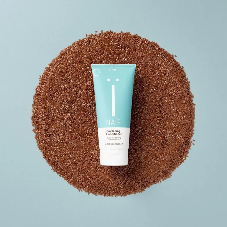 Schoon en gezond haar is belangrijk, maar net zo belangrijk is dat het goed zit en zacht aanvoelt na het wassen. Naïf Verzachtende Conditioner geeft het haar een natuurlijke boost en een natuurlijke glans. De verzorgende conditioner wordt gemaakt met lijnzaadolie dat het haar zacht maakt, voedt en dat antistatisch werkt. Dit allemaal, zonder gebruik te maken van silicionen of microplastics. Vriendelijk voor je haar én de natuur. De natuurlijke formulering van lijnzaadextract en zonnebloemolie draagt daarnaast bij aan de bescherming van kwetsbare lokken, zoals gespleten haarpunten en geverfd haar. Win win!