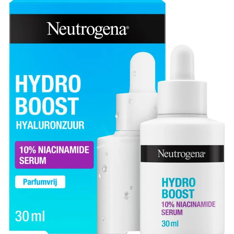 Het nieuwe Neutrogena® Hydro Boost 10% Niacinamide Serum is de oplossing voor een egale en stralende huid. Ontwikkeld met dermatologen en geschikt voor alle huidtypes, inclusief de gevoelige huid, biedt dit serum intense hydratatie en verbetert het zichtbaar de huidtextuur. De combinatie van hyaluronzuur en 10% niacinamide helpt de huid te hydrateren, de poriën te verfijnen en een doffe huid te bestrijden. Het serum is parfumvrij en wordt snel geabsorbeerd zonder een vet laagje achter te laten, waardoor het perfect is voor onder make-up. Geniet van een gezonde, stralende huid met zichtbaar resultaat na slechts één gebruik.