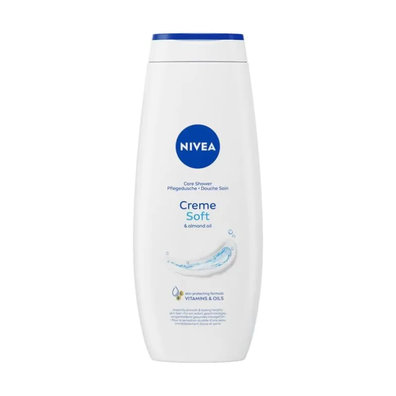 NIVEA Creme Soft Douchecrème 250ml, is een verzorgende douchecrème voor een gehydrateerd huidgevoel. Laat deze douchecrème met amandelolie je huid omhullen met verzorgend zacht schuim, terwijl de milde geur je zintuigen streelt. De verzorgende formule verwent je huid en laat haar zacht en gehydrateerd aanvoelen. Maak van een alledaagse douche een moment om te genieten met de verzorging van NIVEA. De formule is 99% biologisch afbreekbaar* en respecteert het microbioom van de huid. Een gezond uitziende huid voelde nog nooit zo goed. Douchecrème met amandeloliën. Een formule die het microbioom van de huid respecteert. Met een 99% biologisch afbreekbare formule* *volgens OESO of gelijkwaardige methoden