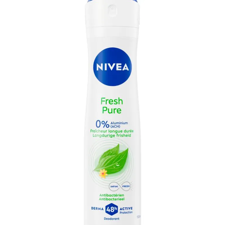 NIVEA Fresh Pure deodorant spray is speciaal ontwikkeld voor vrouwen die op zoek zijn naar langdurige frisheid en betrouwbare bescherming. Deze deodorant biedt een heerlijk fris huidgevoel dankzij een van onze INFINIFRESH-geuren, die ervoor zorgt dat je de hele dag een aangename geur behoudt. Het frisse gevoel blijft langer aanhouden dan slechts een paar uur, zodat je je zelfverzekerd en comfortabel voelt, ongeacht wat de dag brengt.Met 48 uur effectieve bescherming tegen zweet en geur kun je rekenen op deze deodorant, die niet alleen effectief is, maar ook zacht voor de huid. De Derma 48u Active Protection-technologie zorgt ervoor dat de deodorant samenwerkt met je huid voor een krachtige en betrouwbare werking tegen zweet en geurtjes. De huidvriendelijke formule is ontworpen om mild te zijn en is geschikt voor dagelijks gebruik.Bovendien zijn de formules dermatologisch getest op huidverdraagzaamheid, zodat je er zeker van kunt zijn dat je huid goed wordt verzorgd. Kies voor NIVEA Fresh Pure deodorant spray en ervaar de perfecte combinatie van langdurige frisheid, betrouwbare bescherming en zachte huidverzorging.