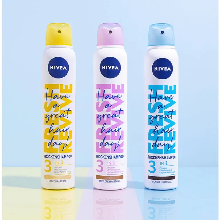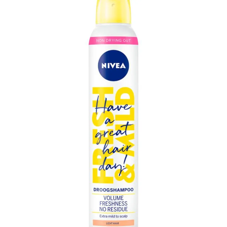 NIVEA Fresh Revive 3-in-1 Droogshampoo voor licht haar is de perfecte dagelijkse haarverfrisser, speciaal ontworpen voor lichte haartinten. Geniet van een onmiddellijk fris haargevoel en een aangename geur die de hele dag blijft hangen. Deze droogshampoo laat geen witte resten achter en droogt het haar niet uit, wat zorgt voor een natuurlijke uitstraling zonder ongewenste poederachtige effecten. De veganistische formule is extra mild voor de hoofdhuid en geschikt voor alle haartypen. Ideaal voor snel en eenvoudig verfrissen van je haar, zonder water. Perfect voor wie op zoek is naar een milde droogshampoo, geschikt voor licht haar, zonder restjes of uitdroging. NIVEA Fresh Revive Droogshampoo geeft je haar direct een frisse boost, zodat het er de hele dag verzorgd uitziet