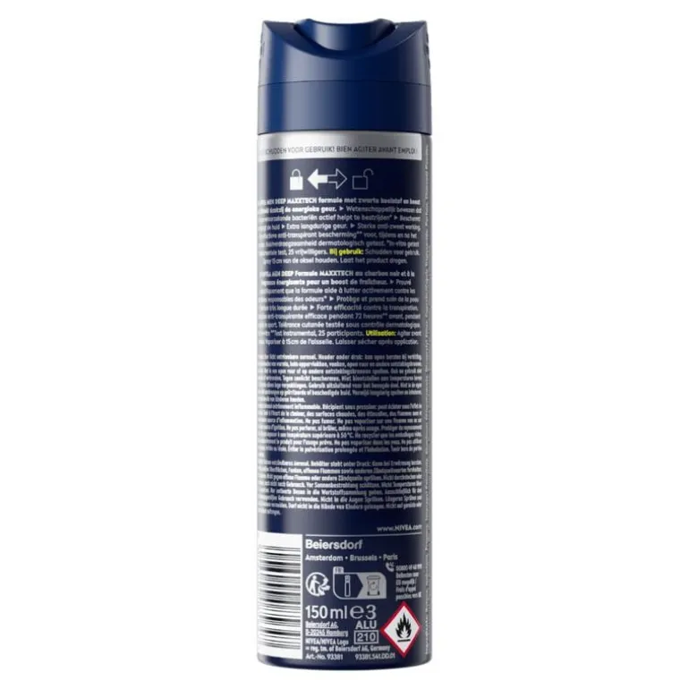 NIVEA MEN DEEP SPORT Anti-Transpirant is speciaal ontwikkeld voor mannen met een actieve levensstijl. De innovatieve MAXXTECH-formule met zwarte koolstof en een verfrissende, opwekkende geur biedt betrouwbare bescherming voor, tijdens én na het sporten. Deze deodorant vermindert bacteriën met meer dan 99,9%* en helpt zo effectief lichaamsgeur te voorkomen. Daarnaast zorgt hij voor een langdurig fris gevoel, krachtige antizweetwerking en actieve huidbescherming. Ideaal voor wie maximale frisheid en vertrouwen nodig heeft, zelfs tijdens intensieve inspanning.