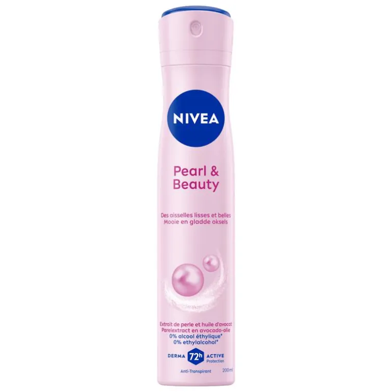 NIVEA Pearl & Beauty Anti-Transpirant Spray is speciaal ontwikkeld voor de vrouw die niet alleen op zoek is naar effectieve bescherming, maar ook waarde hecht aan verzorgde en mooie oksels. Deze deodorant bevat natuurlijke parelextracten die helpen de huidteint van de oksels te egaliseren, waardoor je huid er stralender uitziet. Daarnaast is de formule verrijkt met avocado-olie, die bekend staat om zijn verzorgende eigenschappen, zodat je huid zacht en glad aanvoelt. Het resultaat is een anti-transpirant die niet alleen beschermt, maar ook de schoonheid van je huid ondersteunt.De formule bevat geen ethylalcohol, waardoor de deodorant zacht is voor de huid en geschikt is voor dagelijks gebruik. Met Derma 72u Active Protection biedt deze anti-transpirant tot wel 72 uur betrouwbare bescherming tegen zweet en geur. De technologie werkt samen met de huid om krachtige en effectieve bescherming te bieden, terwijl de huidvriendelijke formule ervoor zorgt dat je oksels goed verzorgd blijven. De huidverdraagzaamheid van de NIVEA Pearl & Beauty Anti-Transpirant is dermatologisch bewezen, waardoor je kunt vertrouwen op een veilige en milde verzorging. Deze deodorant biedt de ideale combinatie van bescherming, verzorging en schoonheid.