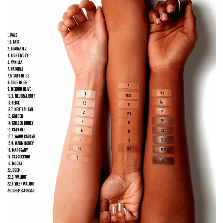 Water/Aqua/Eau, Cyclopentasiloxane, Methyl Methacrylate Crosspolymer, Cyclohexasiloxane, Butylene Glycol, PEG-10 Dimethicone, Trimethylsiloxysilicate, Polyglyceryl-3 Polydimethylsiloxyethyl Dimethicone, Silica Dimethyl Silylate [Nano], Sodium Chloride, Triethoxycaprylylsilane, Dimethicone, Dimethicone/Vinyl Dimethicone Crosspolymer, Aluminum Hydroxide, Disodium EDTA, Propylene Carbonate, Disteardimonium Hectorite, Ethylhexylglycerin, Cetyl PEG/PPG-10/1 Dimethicone, Tocopherol, Pentaerythrityl Tetra-di-t-butyl Hydroxyhydrocinnamate, Phenoxyethanol. MAY CONTAIN / PEUT CONTENIR (+/-): Iron Oxides (CI 77491, CI 77492, CI 77499), Titanium Dioxide (CI 77891).