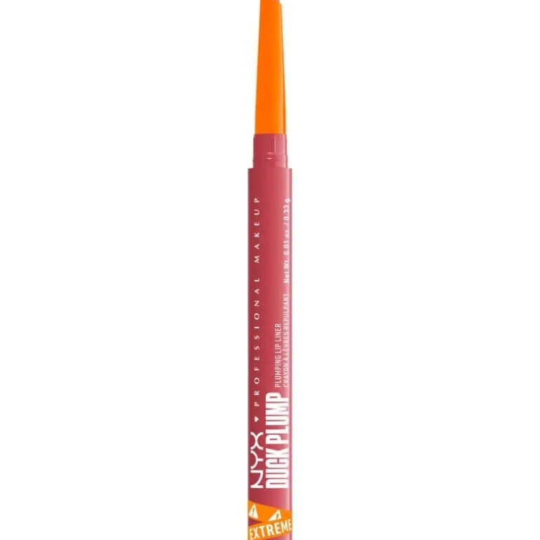 NYX Professional Make Up Duck Plump Lippotlood is een nieuw lippotlood uit de Duck Plump reeks. Maak je klaar, want met dit nieuwe Duck Plump lippotlood wordt de Duck Plump-familie nog plumper! Van alledaagse nudes tot roze, rood en bruin, kies uit de 12 pittige lippotloden voor een verbluffende volle lippenlook. Ontdek de dubbelzijdige punt van het Duck Plump Lippotlood, waarbij je de scherpe punt gebruikt voor het trekken van precieze lijnen, en de platte punt om de binnenste hoeken van je lippen te accentueren. De niet-plakkerige formule is verrijkt met pittige gember en capsicum die samen voor een langdurig voller resultaat zorgen.