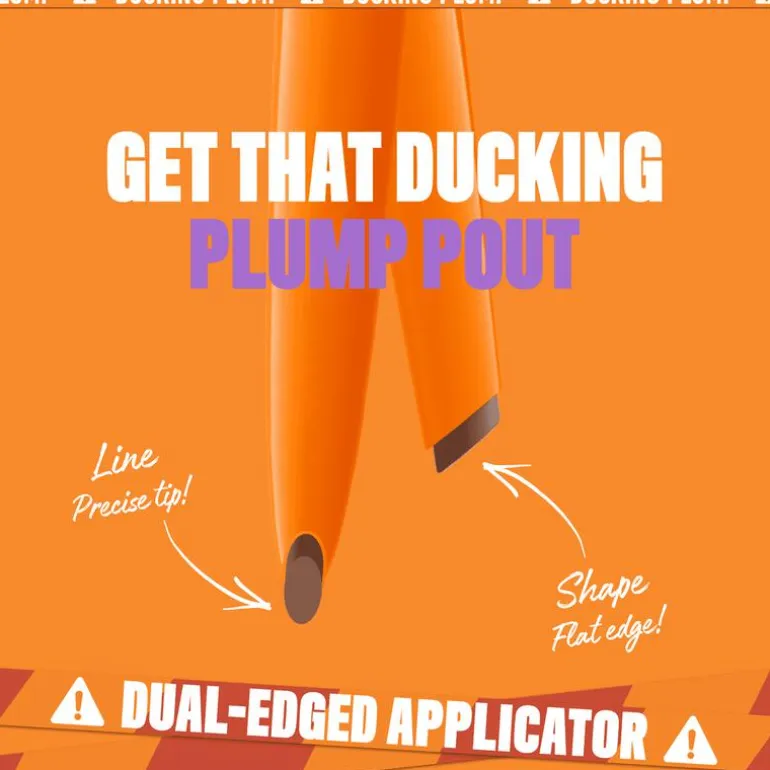 Voor een meer uitgesproken resultaat in combinatie met een Duck Plump lipgloss, teken eerst de contouren van je lippen met het Duck Plump lippotlood. Begin met de cupidoboog (in het midden) van je bovenlip, en volg dan de natuurlijke vorm van je lippen. Je kunt ook het lippotlood alleen gebruiken door het volledig over je lippen heen aan te brengen.