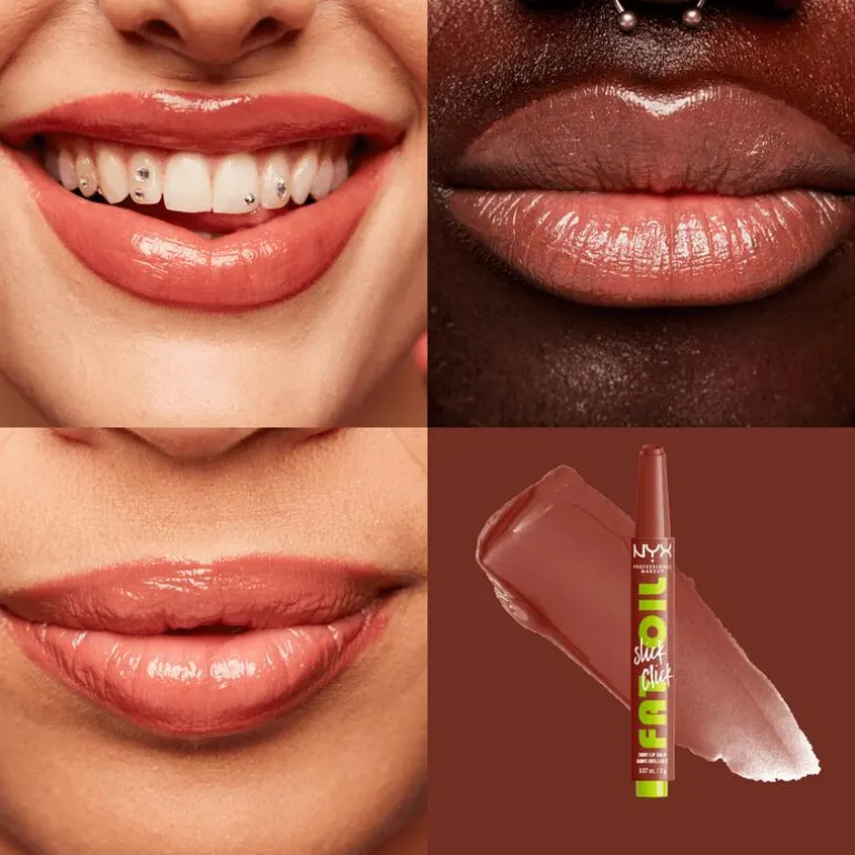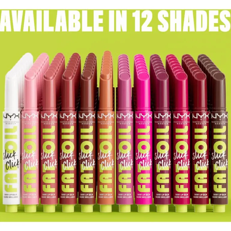 NYX Fat Oil Slick Click is een gepigmenteerde lippenbalsem in klikverpakking die precies de juiste hoeveelheid formule afgeeft. Snel, gemakkelijk en knoeivrij aan te brengen. Het enige wat je hoeft te doen is erop klikken en je lippen onderdompelen in een overvloed aan gunstige eigenschappen! Geef je lippen de verzorging die ze nodig hebben met de vegan formule op basis van avocado-, braambessen- en frambozenolie. Voor een overvloedige hydratatie, tot wel 12 uur lang! De lichte textuur voelt niet-plakkerig en ultracomfortabel aan, perfect voor dagelijks gebruik. Creëer een gladde, glanzende finish met luchtige pigmenten die voor royale accenten zorgen. Gepigmenteerde balsem in opklikbare verpakking voor een lichte kleur met een niet-plakkerige, glanzende afwerking en hydratatie Stap 1. Breng #thisiseverything lipscrub aan om je lippen te helpen hydrateren en verzachten.Stap 2. Gebruik de Fat Oil Slick Click voor een vleugje kleur en een langdurige hydratatie.Stap 3. Combineer Slick Click met een lipliner voor extra diepte en kleur. NYX Fat Oil Slick Click is een gepigmenteerde lippenbalsem in klikverpakking die precies de juiste hoeveelheid formule afgeeft. Snel, gemakkelijk en knoeivrij aan te brengen. Het enige wat je hoeft te doen is erop klikken en je lippen onderdompelen in een overvloed aan gunstige eigenschappen! Geef je lippen de verzorging die ze nodig hebben met de vegan formule op basis van avocado-, braambessen- en frambozenolie. Voor een overvloedige hydratatie, tot wel 12 uur lang! De lichte textuur voelt niet-plakkerig en ultracomfortabel aan, perfect voor dagelijks gebruik. Creëer een gladde, glanzende finish met luchtige pigmenten die voor royale accenten zorgen.Dit product is 100% veganistisch en vrij van dierlijke bestanddelen. Verantwoorde make-up! De formule glijdt moeiteloos en gelijkmatig over je lippen heen. Extreem zacht. Extreem gunstig. Verkrijgbaar in 12 meerdere tinten die geschikt zijn voor alle huidskleuren. Ontdek het snel en ga voor een extreem glanzende look of combineer met een lipliner voor extra diepte en kleur!NYX Professional staat bekend om haar kwalitatieve, pigmentrijke make-upproducten en weerspiegelt de nieuwste make-up trends. In het portfolio van NYX vind je alles, van lippenstiften en oogschaduw tot eyeliners en concealers. Zowel populair bij het grote publiek, als bij professionele visagisten over de hele wereld!