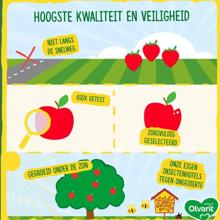 - Met één soort groente in de hoofdrol en een aangepaste structuur, afgestemd op de leeftijd en voedingsbehoefte van je kindje