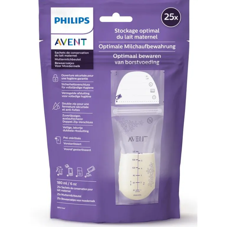 Met de moedermelk bewaarzakjes van Philips Avent kun je je kostbare moedermelk veilig opbergen. Ze kunnen worden opgeborgen in de koelkast of vriezer en zijn voorgesteriliseerd voor onmiddellijk gebruik. “Ultieme bescherming