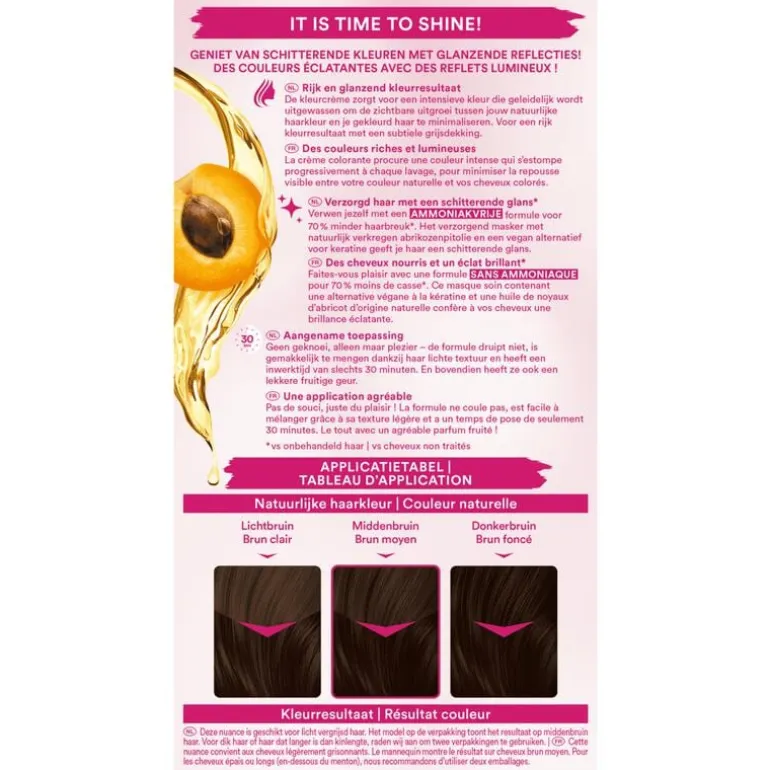 - Met hydraterend masker: na de haarkleuring voelt het haar diep gehydrateerd en zijdezacht aan. Het is makkelijk doorkambaar en heeft een onweerstaanbare glans.