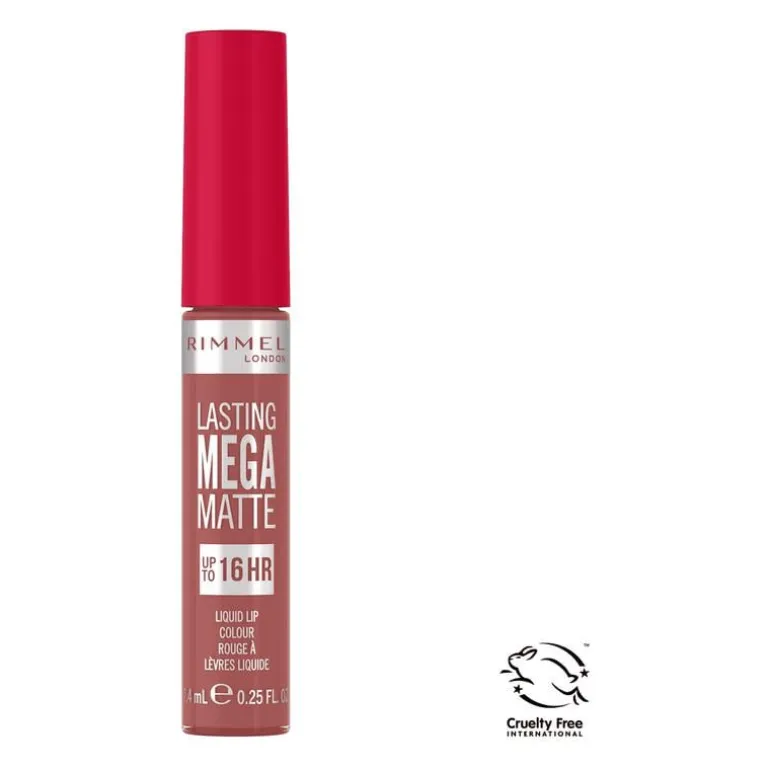 - De Rimmel London Mega Matte Vloeibare lipstick bestaat uit een diervriendelijke en vegan formule die met de lippen versmelt en een intens gekleurde matte finish biedt die de hele dag lang blijft zitten.