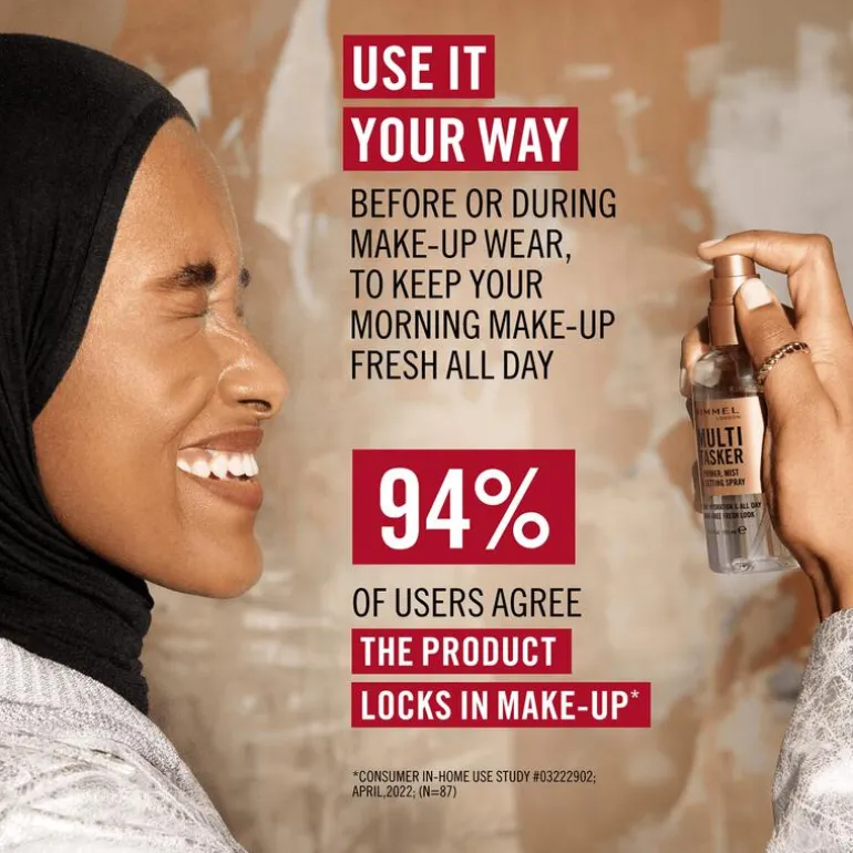 Rimmel 3-in-1 Multi-Tasker Primer, Mist & Setting Spray met verfrissend effect bereidt de huidt voor en fixeert de hele dag lang.