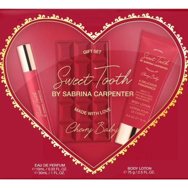 Ontdek de betoverende wereld van Sabrina Carpenter met deze luxe giftset. De set bevat alles om jouw favoriete geur volledig tot zijn recht te laten komen. De 30 ml Eau de Parfum is ideaal voor dagelijks gebruik, terwijl de 10 ml travel size perfect is om onderweg bij je te hebben zodat je de geur eenvoudig kunt bijsprayen. De 75 ml zachte bodylotion hydrateert de huid en versterkt de geur subtiel voor een langdurige, harmonieuze geurbeleving.Deze giftset is het perfecte cadeau voor elke Sabrina Carpenter-liefhebber — of een heerlijke verwennerij voor jezelf.Inhoud:30 ml Eau de Parfum10 ml Eau de Parfum (travel size)75 ml Bodylotion