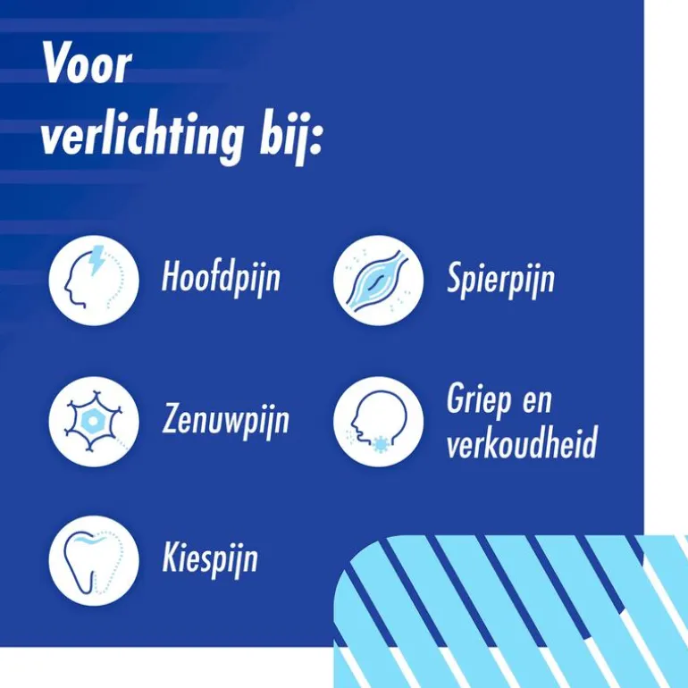 - Ook voor verlichting van o.a. zenuwpijn, kiespijn, spierpijn, spit en bij griep en verkoudheid