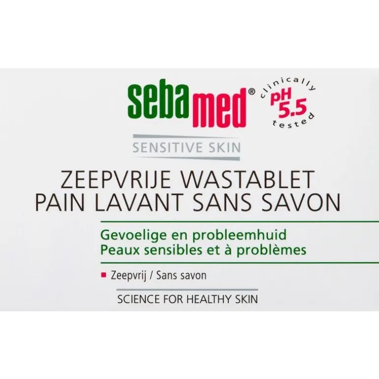 Met de Zeepvrije Wastablet van Sebamed ga je voor een stukje nostalgie. Wie had er vroeger nu niet een lekker stuk zeep in huis,maar dan zonder de nadelen van zeep. De Zeepvrije Wastablet reinigt het gezicht, handen en lichaam tot diep in de poriën en het beschermt de huid tegen invloeden van buitenaf.Daarbij is het product zeer effectief bij acné, puistjes, mee-eters en zeepallergie. De huidneutrale pH-waarde van 5,5 versterkt de natuurlijke beschermingslaag van de huid. Zo blijft de huid gezond en in topconditie. Ontwikkelt door en met dermatologen. Dermatologisch/klinisch getest.