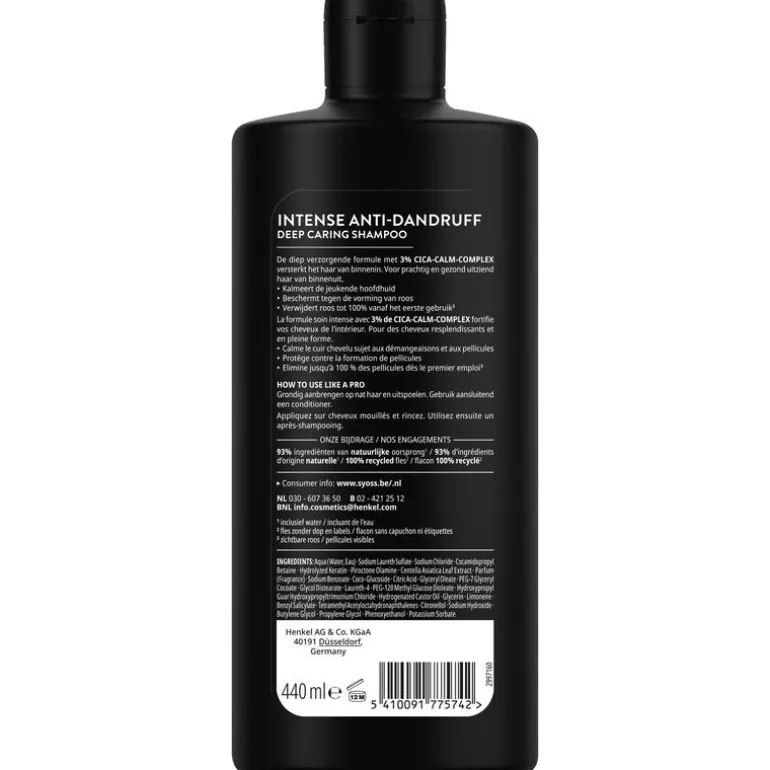 Syoss Intense Anti-Dandruff Shampoo tegen de vorming van roos.