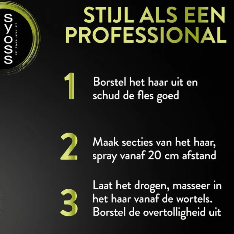 - lon- geïnspireerde SYOSS Droogshampoo, ontwikkeld met en getest door kappers, biedt je de kans nog langer van die salon look te profiteren, gewoon thuis.