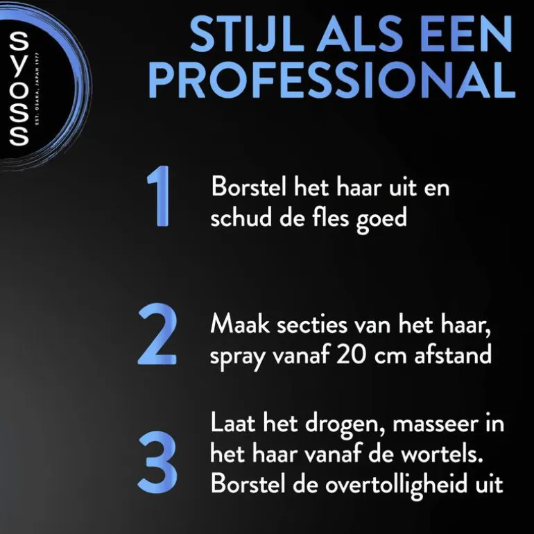 - lon- geïnspireerde SYOSS Droogshampoo, ontwikkeld met en getest door kappers, biedt je de kans nog langer van die salon look te profiteren, gewoon thuis.