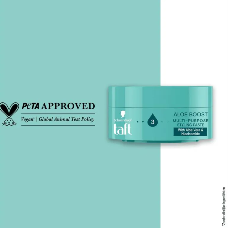 Alle Taft formules zijn vegan* en PETA gecertificeerd**.