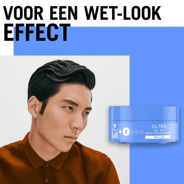 Taft Ultra Gel Wax voor tot 24 uur controle & structuur met glanzende finish. Het geeft je haar een soft wet-look effect met de hold van een gel en de structuur van een wax.