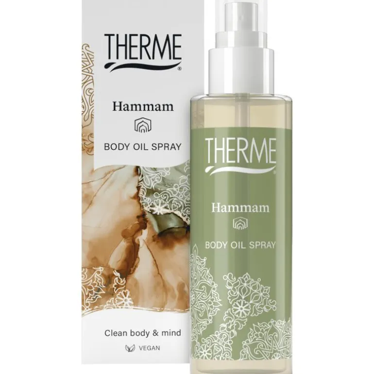 Therme Hammam Body Oil Spray is een rijke lichaamsolie die direct wordt opgenomen. De olie werkt voedend en verzorgend en laat de huid stralen. Geniet van de oriëntaalse geur van cederhout gecombineerd met warme oosterse kruiden en aromatische bergamot.