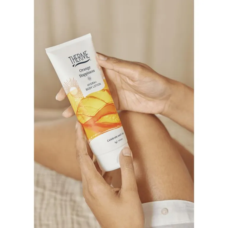 Therme Orange Happiness Hydra+ Body Lotion is een voedende lotion die de huid hydrateert en verzorgt. Het trekt snel in en parfumeert het lichaam langdurig. Geniet van de stralende geur van sinaasappel en aromatisch hout gecombineerd met bloemige mimosa en kruidige patchouli.