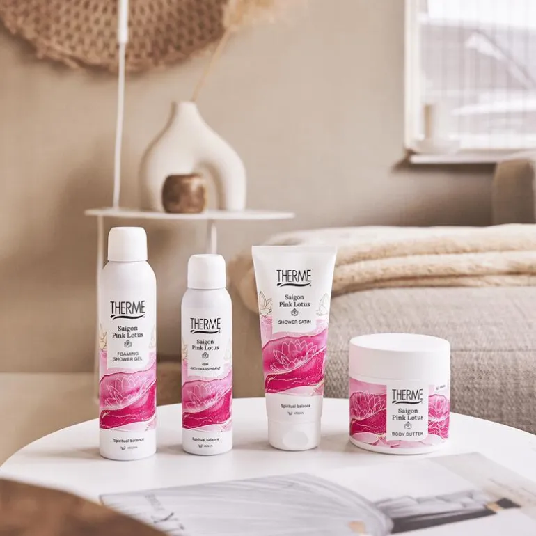 Therme Saigon Pink Lotus is geïnspireerd op de heilige lotus, een symbool voor transformatie en schoonheid. Creëer je eigen wellnessritueel en neem de tijd voor een heerlijke douchebeleving met de Therme Saigon Pink Lotus producten.