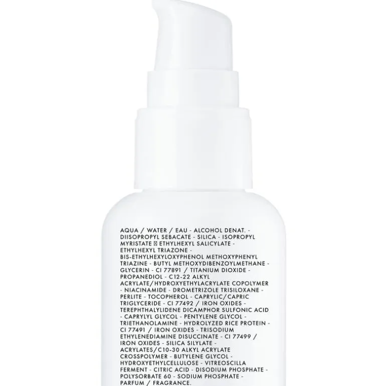 AQUA / WATER / EAU • ALCOHOL DENAT. • DIISOPROPYL SEBACATE • SILICA • ISOPROPYL MYRISTATE • ETHYLHEXYL SALICYLATE • ETHYLHEXYL TRIAZONE • BIS-ETHYLHEXYLOXYPHENOL METHOXYPHENYL TRIAZINE • BUTYL METHOXYDIBENZOYLMETHANE • GLYCERIN • CI 77891 / TITANIUM DIOXIDE • PROPANEDIOL • C12-22 ALKYL ACRYLATE/HYDROXYETHYLACRYLATE COPOLYMER • NIACINAMIDE • DROMETRIZOLE TRISILOXANE • PERLITE • TOCOPHEROL • CAPRYLIC/CAPRIC TRIGLYCERIDE • CI 77492 / IRON OXIDES • TEREPHTHALYLIDENE DICAMPHOR SULFONIC ACID • CAPRYLYL GLYCOL • PENTYLENE GLYCOL • TRIETHANOLAMINE • HYDROLYZED RICE PROTEIN • CI 77491 / IRON OXIDES • TRISODIUM ETHYLENEDIAMINE DISUCCINATE • CI 77499 / IRON OXIDES • SILICA SILYLATE • ACRYLATES/C10-30 ALKYL ACRYLATE CROSSPOLYMER • BUTYLENE GLYCOL • HYDROXYETHYLCELLULOSE • VITREOSCILLA FERMENT • CITRIC ACID • DISODIUM PHOSPHATE • POLYSORBATE 60 • SODIUM PHOSPHATE • PARFUM / FRAGRANCE (F.I.L. N70053448/1).