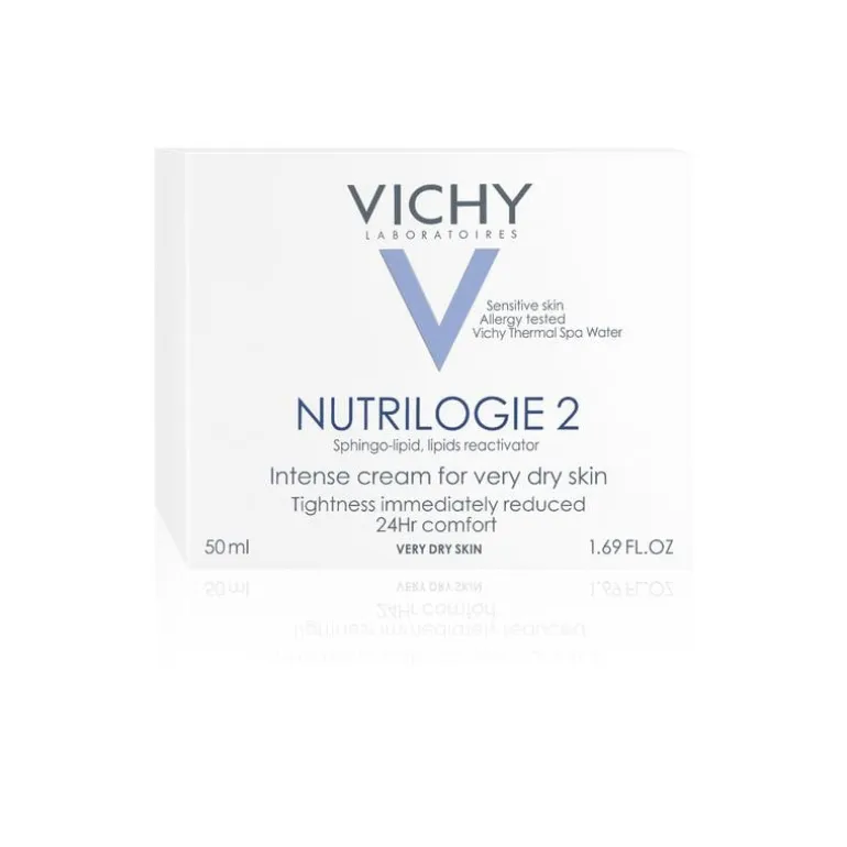 Vichy Nutrilogie 2 is een intensieve gezichtscrème voor een gevoelige, zeer droge huid. Deze crème kalmeert de huid onmiddellijk en biedt tot 24 uur hydratatie en comfort. De formule is verrijkt met Sphingo-lipide™, het resultaat van 10 jaar onderzoek. Het is een ultravoedend gepatenteerd actief ingrediënt dat het gebrek aan lipiden compenseert. Het is meer dan alleen een actief ingrediënt om het gebrek aan lipiden te compenseren: het helpt de huid om te leren haar eigen lipiden te produceren, waardoor de hydrolipidenlaag weer wordt opgebouwd en vochtverlies wordt beperkt.
