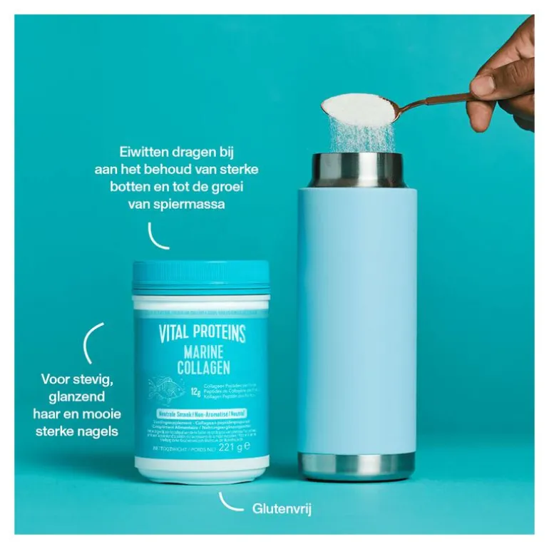 De Vital Proteins Marine Collageen is speciaal ontwikkeld voor pescotariërs en wordt geproduceerd uit vis. Met maar één eenvoudig ingrediënt is het neutraal van smaak en veelzijdig in gebruik: voeg het toe aan je dagelijkse kop koffie, smoothies of je favoriete recept. Omdat het oplost in warme en koude dranken, is het gemakkelijk te gebruiken op elk moment van je dag.