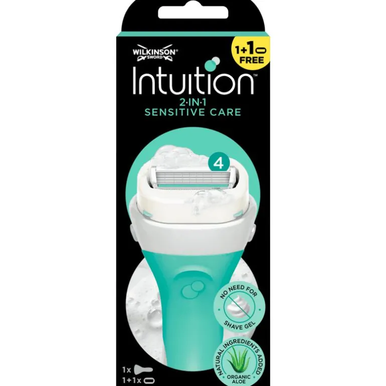 Intuition 2-in-1 van Wilkinson schuimt en scheert tegelijkertijd! Dit multitasking scheersysteem bespaart tijd en is ideaal voor iedereen die van een aangenaam en nauwkeurig scheerresultaat houdt, maar het graag ongecompliceerd houdt.Alles in één stap: schuimt, scheert en hydrateert de huid tijdens het scheren.