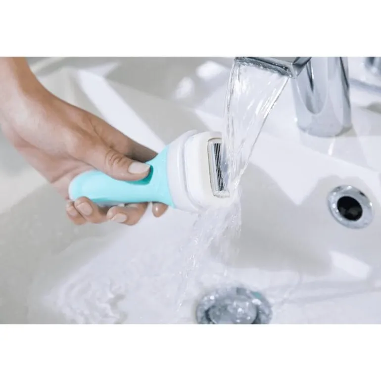 - Reinig na elke of elke tweede scheerbeweging het mesje onder stromend, warm water om verstopping te voorkomen.