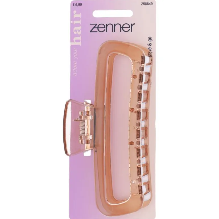 Deze veelzijdige haarklem is ideaal om je haar casual op te steken als je gaat koken of juist voor een elegante look voor op kantoor. De gebogen pasvorm volgt de vorm van je hoofd, waardoor hij zelfs een langere tijd comfortabel zit. De grote haarklem is ideaal voor dik of lang haar, omdat hij veel haar kan vasthouden. De klem heeft een bruine kleur en transparante finish, voor een elegante en subtiele touch aan je dagelijkse outfit.