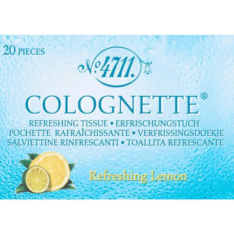 4711 Colognette Reinigingsdoekjes zijn heerlijke verfrissende reinigingsdoekjes met de frisse geur van citroen. Ideaal om overal mee naartoe te nemen zodat je je op ieder moment van de dag kunt opfrissen. Handig voor op reis of na het sporten!