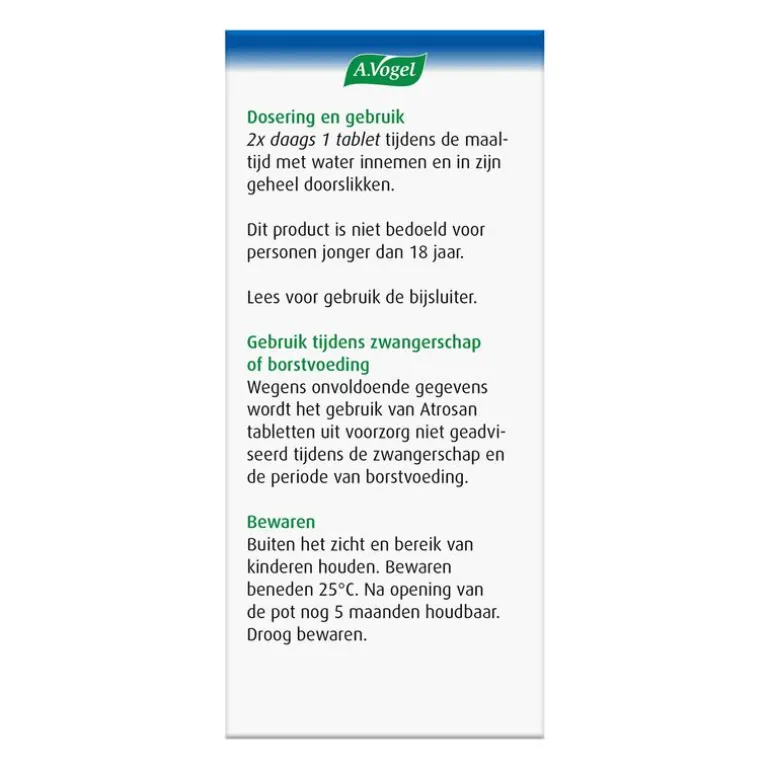 Meer informatie over het gebruik van Atrosan tabletten tabletten vind je in de bijsluiter.