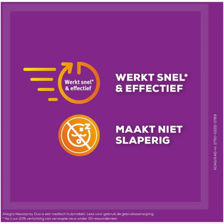 Allegra Neusspray Duo werkt snel & effectief, voorkomt allergische reacties en maakt niet slaperig.