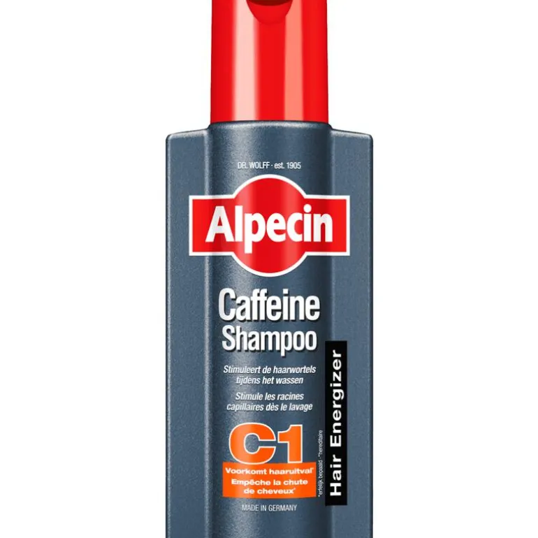 De shampoo die de haargroei direct in de wortels stimuleert. Het werkzame cafeïne-complex gaat actief haaruitval tegen. Tijdens het wassen van het haar zal de cafeïne doordringen tot de haarwortels om zo de negatieve werking van testosteron te blokkeren. Het resultaat: krachtige haargroei met voelbaar meer haar. Het cafeïne-houdende werkzame complex van Alpecin zorgt ervoor dat de groeifases van het haar bij erfelijk bepaalde haaruitval worden verlengd. Zo blijft de volle bos haar langer vol! Daarnaast zijn er geen siliconen toegevoegd aan Alpecin Cafeïne-Shampoo C1. Hierdoor zal fijn en futloos haar meer hold en volume krijgen, en is zo makkelijker in model te brengen.