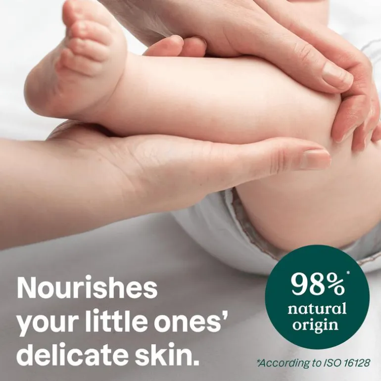 Deze bodylotion is gemaakt van 98,8% natuurlijke ingrediënten* waaronder bosbessenbladextract met beschermende en verzachtende eigenschappen. Het houdt de huid van je baby soepel en gezond. De lichtgewicht en niet-vette formule met een zacht perengeur is dermatologisch getest en perfect voor dagelijkse verzorging van de tere huid van je baby.