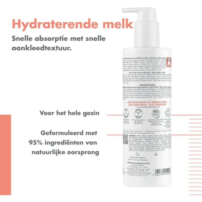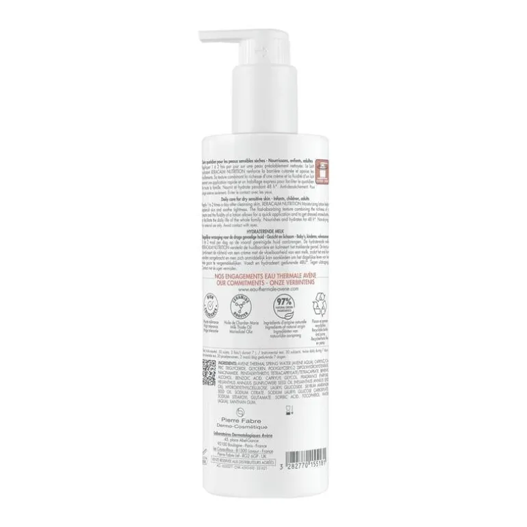 Hydraterende en voedende melk voor de gevoelige en droge huid van het hele gezin. Deze dagverzorging met hoge tolerantie bestaat voor 97% uit bestanddelen van natuurlijke oorsprong. Deze crème versterkt de huidbarrière van gezicht en lichaam. Vermindert het trekkerige gevoel, voedt en hydrateert de huid 48 uur lang